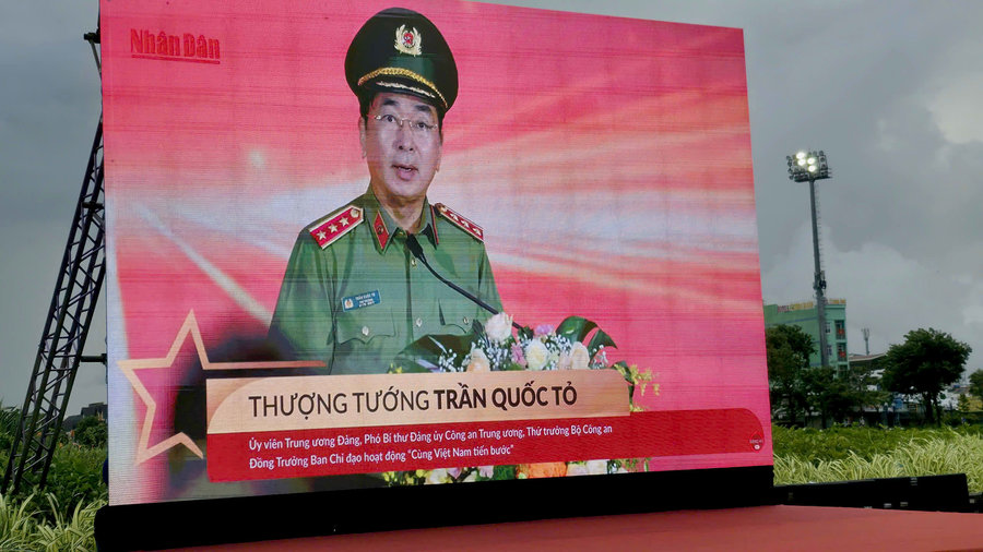 Thượng tướng Trần Quốc Tỏ - Uỷ viên Trung ương Đảng, Phó Bí thư Đảng uỷ Công an Trung ương, Thứ trưởng Bộ Công an. Đồng Trưởng Ban chỉ đạo hoạt động “ Cùng Việt Nam tiến bước” phát biểu và phát động hoạt động đi bộ trên toàn quốc (tại điểm cầu trung tâm Hồ Hoàn Kiếm, Hà Nội).