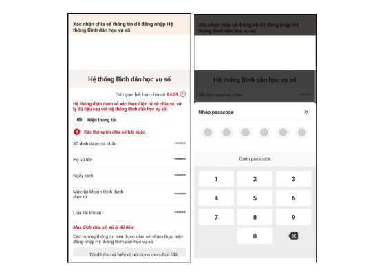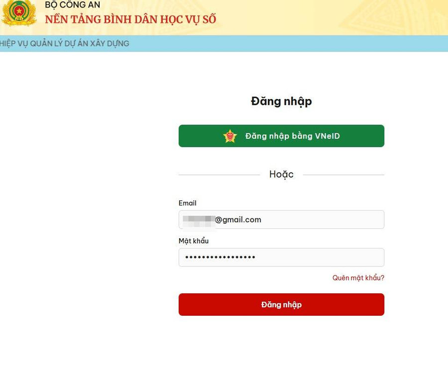 Trên trang binhdanhocvuso sẽ yêu cầu mã đăng nhập của VNEID