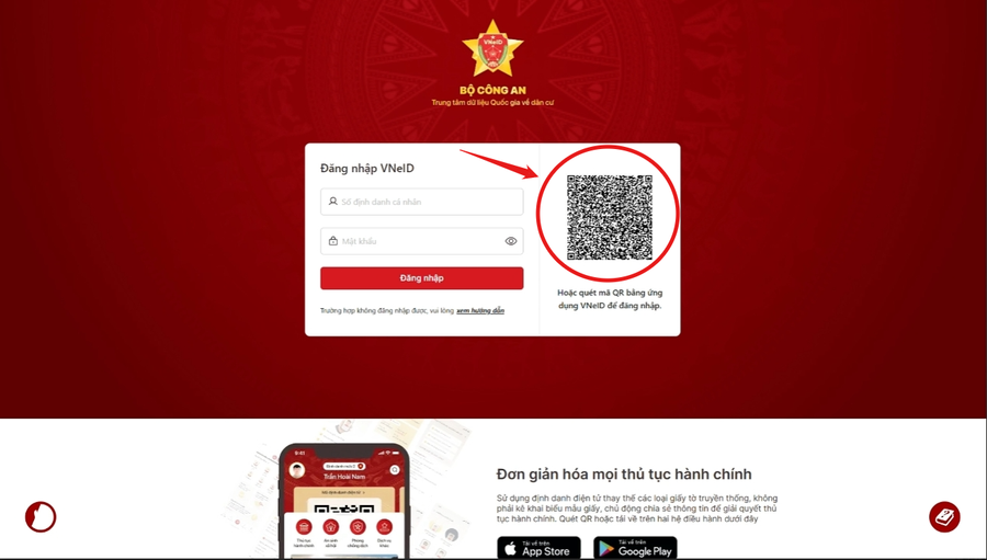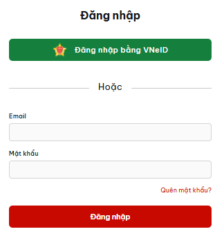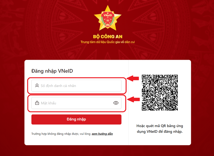 - Đăng nhập bằng VNeID (số định danh cá nhân và mật khẩu hoặc quét mã QR).