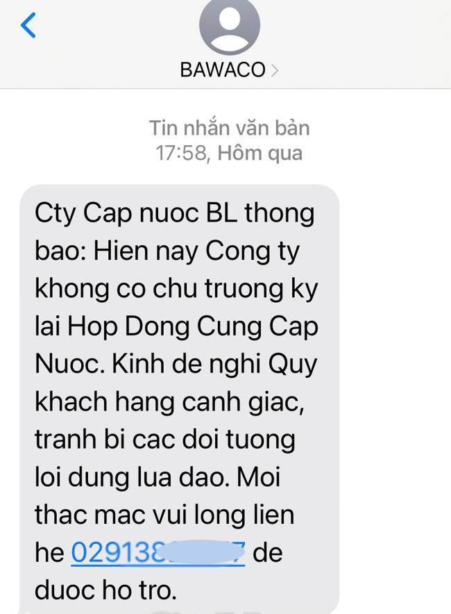 - Gửi tin nhắn có gắn logo giả mạo của đơn vị cấp nước, khiến người dân lầm tưởng đây là thông báo chính thức.