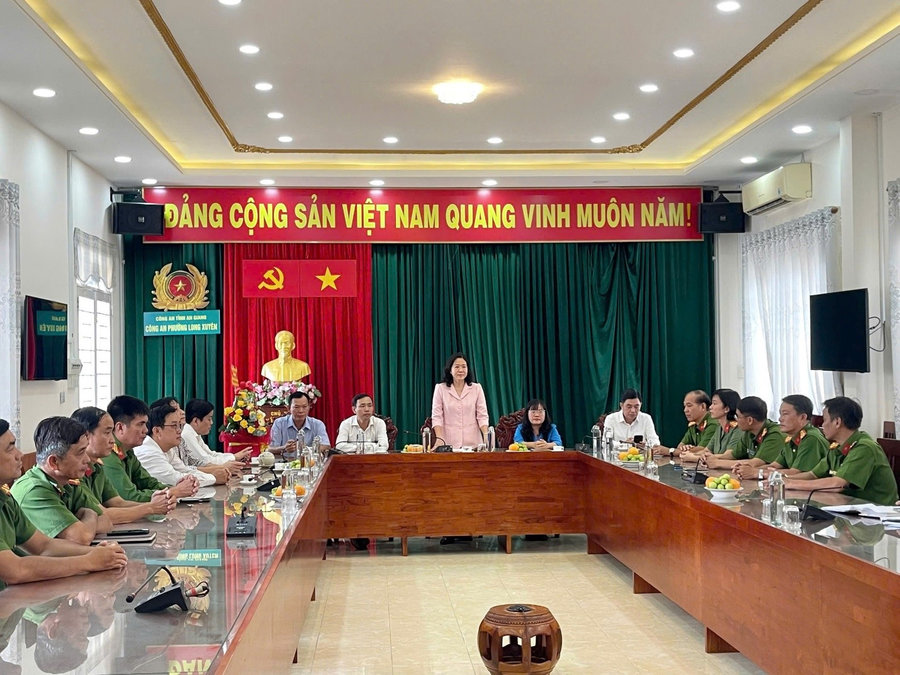 Cùng đi với đoàn còn có đồng chí Đoàn Thị Hương Hà - Phó Bí thư Đảng uỷ, Chủ tịch UBND phường cùng các đồng chí Uỷ viên Ban Thường vụ Đảng uỷ. Tại buổi gặp mặt, đồng chí Võ Thị Xuân Kiều – Phó Bí thư Thường trực Đảng ủy, thay mặt Đảng ủy, HĐND, UBND, UBMTTQ Việt Nam phường đã gửi lời chúc mừng tốt đẹp nhất đến tập thể cán bộ, chiến sĩ Công an phường, ghi nhận những đóng góp quan trọng của lực lượng Công an trong công tác giữ gìn an ninh trật tự, góp phần xây dựng phường Long Xuyên ngày càng văn minh, bình yên, phát triển. Đồng chí mong muốn thời gian tới, Công an phường tiếp tục phát huy truyền thống vẻ vang, nêu cao tinh thần trách nhiệm, gần dân, sát dân, phục vụ Nhân dân ngày càng tốt hơn.