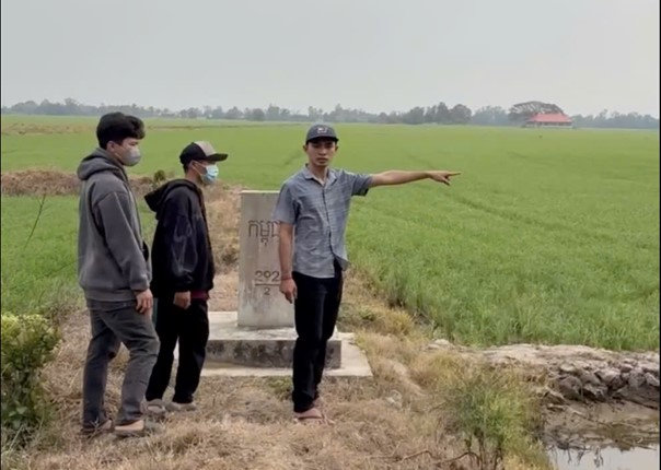 Địa điểm cột mốc 292/2, nơi đối tượng Võ Chí Linh (thứ 3 từ trái qua) thực hiện hành vi đưa người xuất cảnh trái phép.