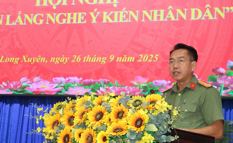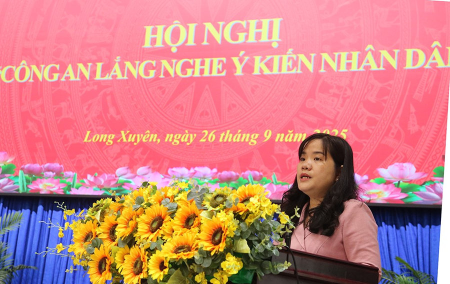 Chiều ngày 26/9/2025, Công an Phường Long Xuyên tổ chức “Hội nghị Công an lắng ý kiến Nhân dân”. Đồng chí Đoàn Thị Hương Hà, Phó Bí thư Đảng ủy, Chủ tịch UBND phường; đồng chí Nguyễn Thanh Tuấn, UVBTV Đảng ủy, Chủ tịch UBMTTQ Việt Nam phường; Thượng tá Võ Văn Chỉnh, Trưởng Công an phường đồng chủ trì Hội nghị.
