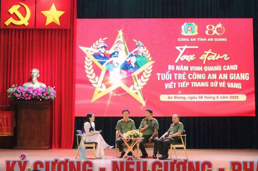 Ngày 08/8/2025, Công an tỉnh An Giang tổ chức Tọa đàm với chủ đề “80 năm Công an nhân dân - Tuổi trẻ Công an An Giang viết tiếp trang sử vẻ vang”. Đại tá Lê Phú Thạnh, Tỉnh ủy viên, Phó Bí thư Đảng ủy, Phó Giám đốc Công an tỉnh dự và chủ trì. Cùng tham dự có đồng chí Dư Phạm Hữu Khuyến - Phó Bí thư Tỉnh đoàn An Giang; các đồng chí nguyên lãnh đạo đoàn Công an tỉnh qua các thời kỳ, lãnh đạo các phòng nghiệp vụ, Trưởng Công an các xã, phường, đặc khu và gần 400 đoàn viên thanh niên.