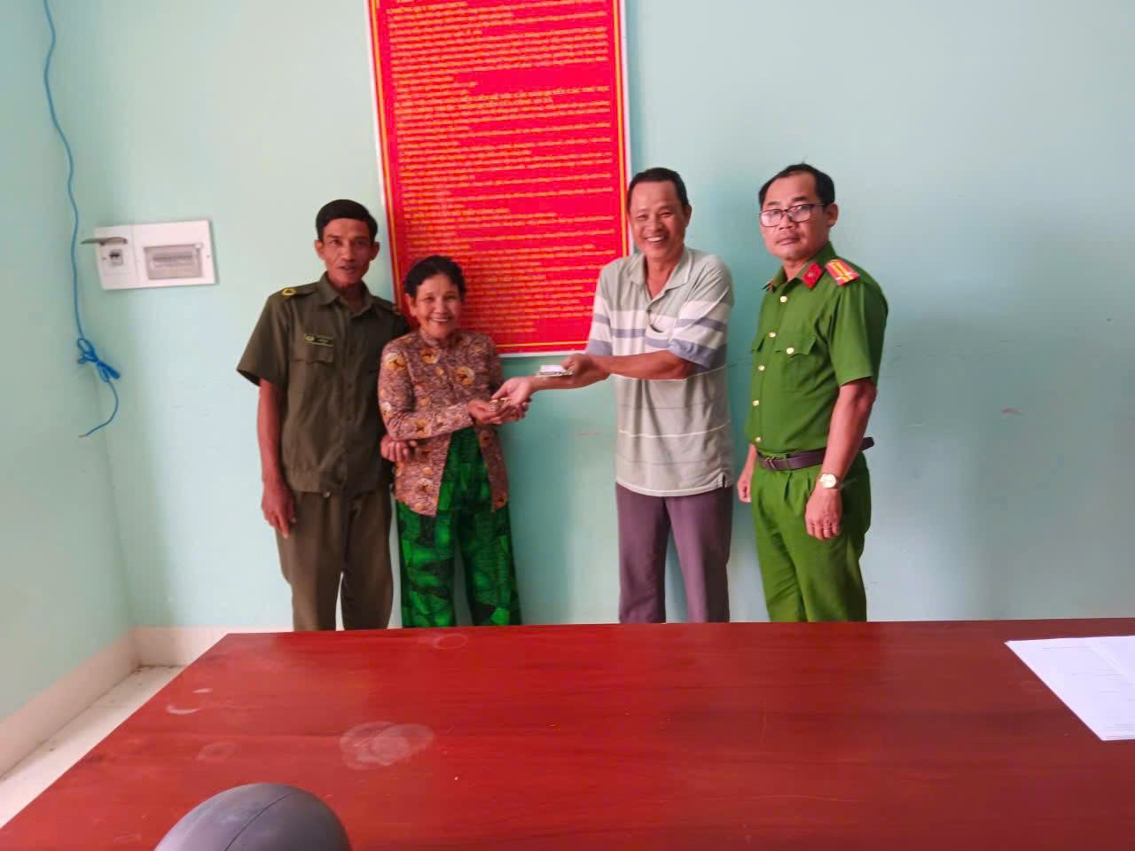 Ngay sau khi tiếp nhận thông tin, lực lượng Công an xã đã nhanh chóng tiến hành xác minh, xác định được chủ sở hữu số tài sản trên là bà Thị Út, sinh năm 1956, thường trú ấp Năm Hải, xã Long Thạnh, tỉnh An Giang và liên hệ mời đến nhận lại tài sản.
