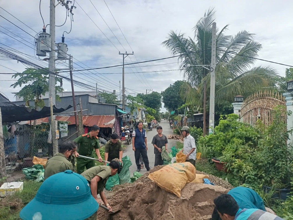 Trước tình hình trên, ngay khi nhận được chỉ đạo của Chủ tịch UBND xã, Công an xã Khánh Bình đã chủ động phối hợp cùng lực lượng An ninh trật tự cơ sở, Xã đội, cùng Ban nhân dân ấp triển khai biện pháp khắc phục. Hàng chục đồng chí được huy động, cùng phương tiện, vật liệu tại chỗ tiến hành san lấp, gia cố đoạn đường hư hỏng. Bên cạnh đó, vận động, hỗ trợ các hộ dân gần khu vực sạt lở tạm thời di dời tìm chỗ ở an toàn. Trong quá trình thực hiện, các lực lượng đã phân công nhiệm vụ cụ thể, vừa đảm bảo an toàn cho người tham gia, vừa duy trì giao thông tạm thời cho bà con.