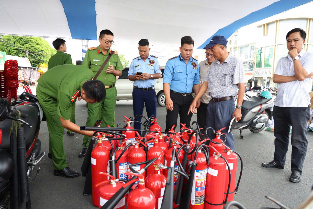 Tại từng gian hàng, đoàn đã tiến hành kiểm tra về PCCC như: trang bị phương tiện PCCC tại chỗ; hệ thống điện; việc sắp xếp, bố trí vật tư, hàng hoá; việc sử dụng nguồn lửa, nguồn nhiệt trong quá trình bán hàng… Bên cạnh việc kiểm tra các trang thiết bị phương tiện PCCC, đơn vị đã tổ chức huấn luyện thực hành nghiệp vụ PCCC và CNCH cho lực lượng PCCC và CNCH cơ sở, trong đó chú trọng hướng dẫn cách thức tổ chức việc thực hiện công tác PCCC tại nơi diễn ra sự kiện; công tác tự kiểm tra PCCC; hướng dẫn nguyên lý hoạt động, tính năng, tác dụng của các thiết bị, dụng cụ PCCC, quy trình tổ chức chữa cháy và tổ chức thoát nạn trong điều kiện sự cố cháy, nổ xảy ra.