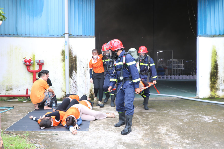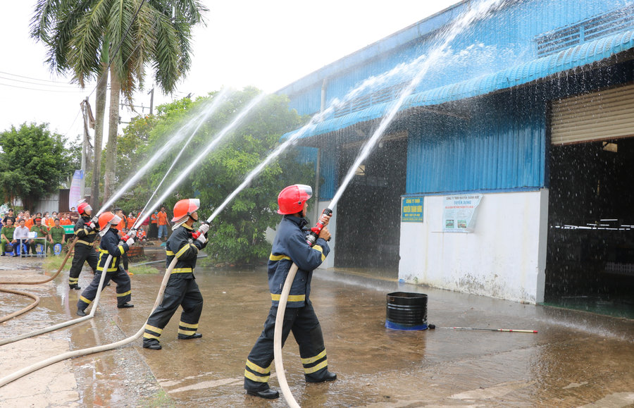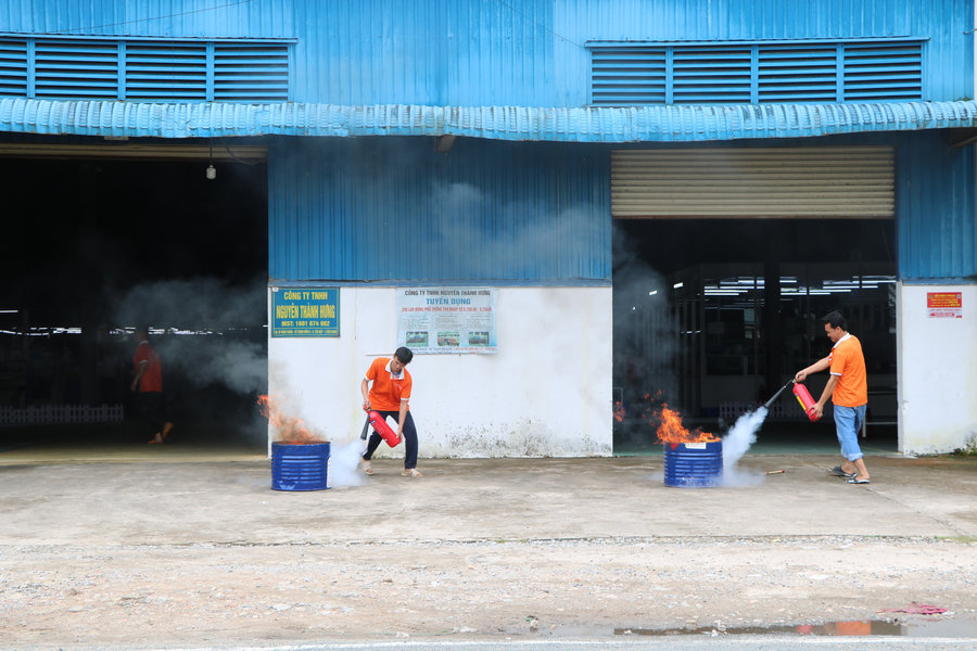 Diễn tập phương án chữa cháy và cứu nạn, cứu hộ tại công ty TNHH Nguyên Thành Hưng