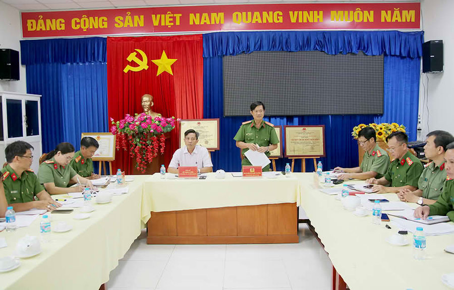 Đoàn công tác Công an tỉnh hướng dẫn toàn diện các mặt công tác trên địa bàn xã Mỹ Hòa Hưng