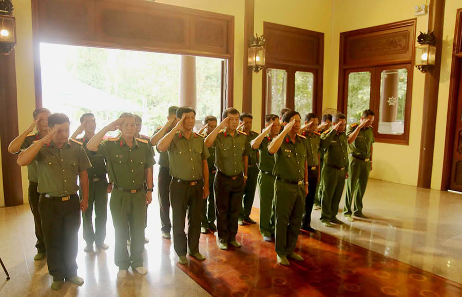 Đại tá Nguyễn Nhật Trường, Phó Giám đốc Công an tỉnh cùng Đoàn công tác dâng hương tưởng niệm tại Khu lưu niệm Chủ tịch Tôn Đức Thắng.