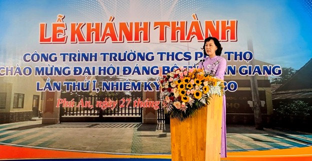 Ngày 27/9/2025, tại xã Phú An, tỉnh An Giang, UBND tỉnh long trọng tổ chức Lễ khánh thành công trình Trường Trung học cơ sở Phú Thọ, chào mừng Đại hội Đảng bộ tỉnh An Giang lần thứ I, nhiệm kỳ 2025 - 2030.