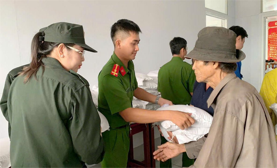 Nhằm phát huy tinh thần tương thân tương ái, chia sẻ khó khăn với các gia đình chính sách, người già neo đơn, trẻ em khuyết tật, thanh niên yếu thế và trẻ em cơ nhỡ, có hoàn cảnh đặc biệt khó khăn. Phòng Cảnh sát cơ động đã vận động và phối hợp với các mạnh thường quân trên địa bàn tổ chức chương trình trao tặng 100 phần quà (01 tấn gạo với trị giá hơn 20 triệu đồng) cho người dân có hoàn cảnh khó khăn, người già neo đơn và trẻ em mồ côi tại xã Cù Lao Giêng, tỉnh An Giang.