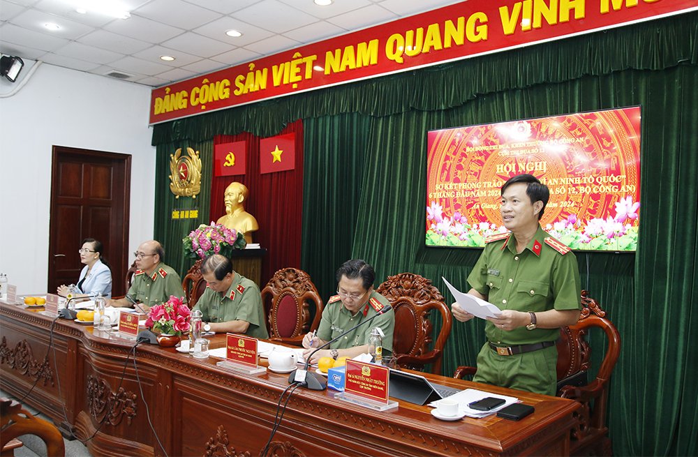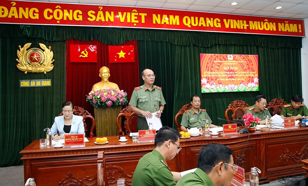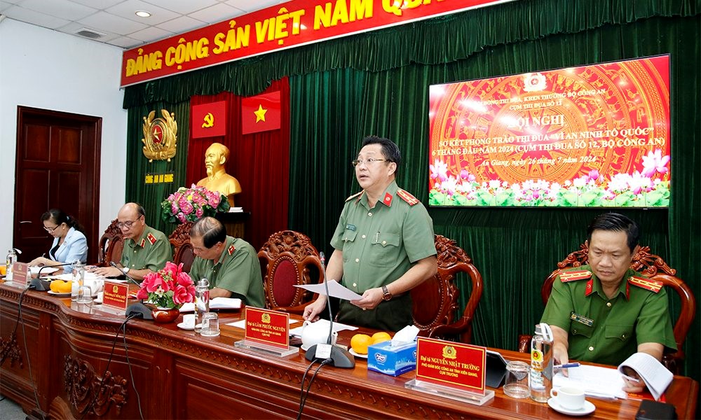 Chiều ngày 26/7/2024, tại Công an tỉnh An Giang, Cụm thi đua số 12, Bộ Công an tổ chức hội nghị sơ kết phong trào thi đua “Vì an ninh Tổ quốc” 6 tháng đầu năm 2024. Tham dự hội nghị có đồng chí Thiếu tướng Lê Hồng Hiệp, Phó Cục trưởng Cục Công tác đảng và công tác chính trị Bộ Công an; đồng chí Thiếu tướng Cao Đăng Hưng, Phó Chánh Văn phòng Bộ Công an; đồng chí Huỳnh Thị Diễm Châu, Phó Giám đốc Sở Nội vụ tỉnh An Giang; các đồng chí đại diện Ban Giám đốc Công an các tỉnh trong Cụm thi đua số 12, Bộ Công an. Đồng chí Đại tá Lâm Phước Nguyên, Giám đốc Công an tỉnh An Giang – Đơn vị Cụm phó Cụm thi đua số 12 chủ trì hội nghị.