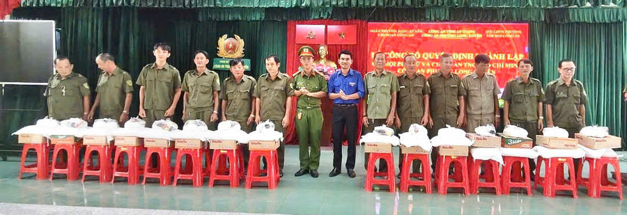 Trao quà cho 55 đồng chí là lực lượng tham gia bảo vệ an ninh, trật tự ở cơ sở