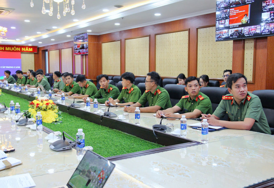 Đại biểu tham dự tại điểm cầu Công an tỉnh An Giang
