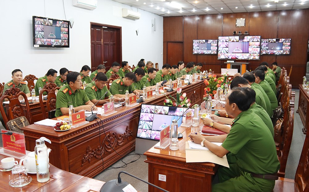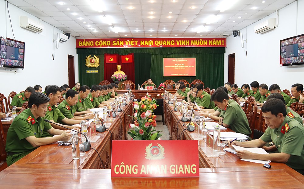 Đồng chí Đại tá Nguyễn Thế Hải, Phó Giám đốc Công an tỉnh tại điểm cầu An Giang