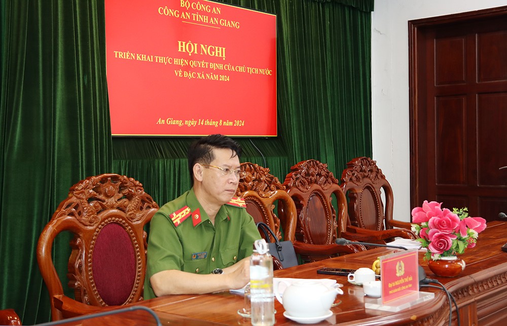 Hội nghị được tổ chức dưới hình thức trực tuyến đến Công an các tỉnh, thành phố trực thuộc Trung ương, nhằm thống nhất nhận thức, cách làm góp phần triển khai thực hiện công tác đặc xá năm 2024 được kịp thời theo đúng Quyết định của Chủ tịch nước, Hướng dẫn của Hội đồng tư vấn đặc xá (HĐTVĐX) và bảo đảm yêu cầu công khai, minh bạch, dân chủ, chặt chẽ, đúng đối tượng, điều kiện quy định, không để sai sót và tiêu cực xảy ra. Dự tại điểm cầu An Giang có đồng chí Đại tá Nguyễn Thế Hải, Phó Giám đốc Công an tỉnh.