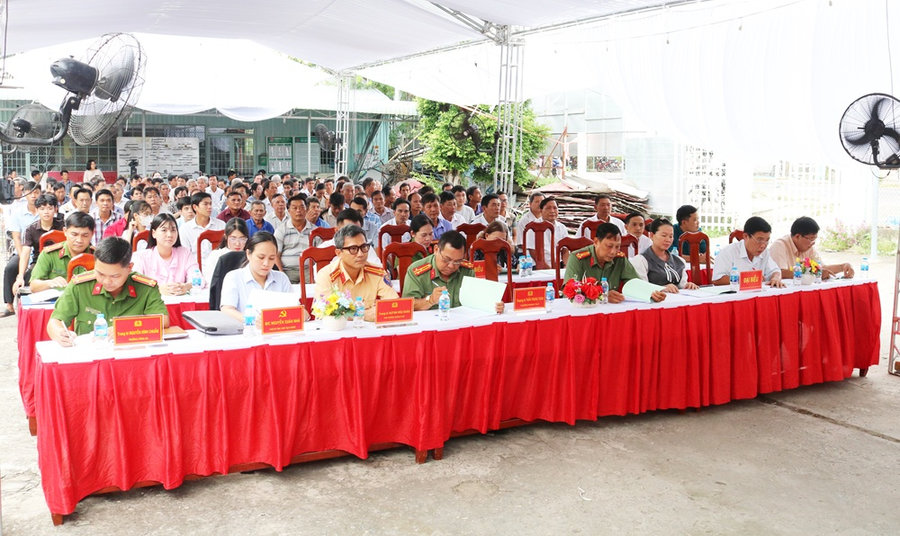 Đại diện các ngành, đoàn thể, khóm, ấp của xã ký kết giao ước thi đua tại ngày hội
