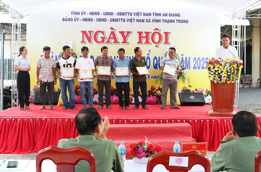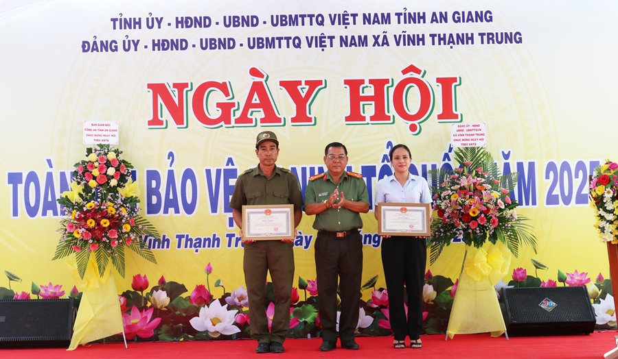 Dịp này, có 02 tập thể, 9 cá nhân được UBND tỉnh, Công an tỉnh và UBND xã Vĩnh Thạnh Trung khen thưởng vì đã có thành tích xuất sắc trong thực hiện công tác “Ngày hội toàn dân bảo vệ an ninh Tổ quốc” năm 2025. Đồng thời trao tặng 20 phần quà cho các gia đình chính sách, các hộ khó khăn trên địa bàn xã.
