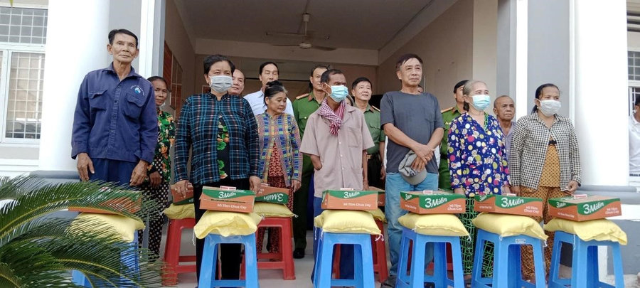Tại đây Công an xã An Cư cũng đã tặng 30 phần quà, trị giá 300.000 đồng/phần cho bà con có hoàn cảnh khó khăn trên địa bàn.